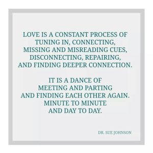 Dr. Sue Johnson, author of “Hold Me Tight” and “Love Sense” describes relationships as a sort of dance, a tango, where sometimes one partner is pursuing and the other is moving away, while other times. the other partner is the pursuer. Sometimes, it is difficult to connect if one or both partners are holding on to grudges about perceived or real past misdeeds committed during the course of the relationship. Other times what gets in the way of really connecting with a partner is a failure to speak honestly about our values, our needs, wants, hopes and desires in the relationship.